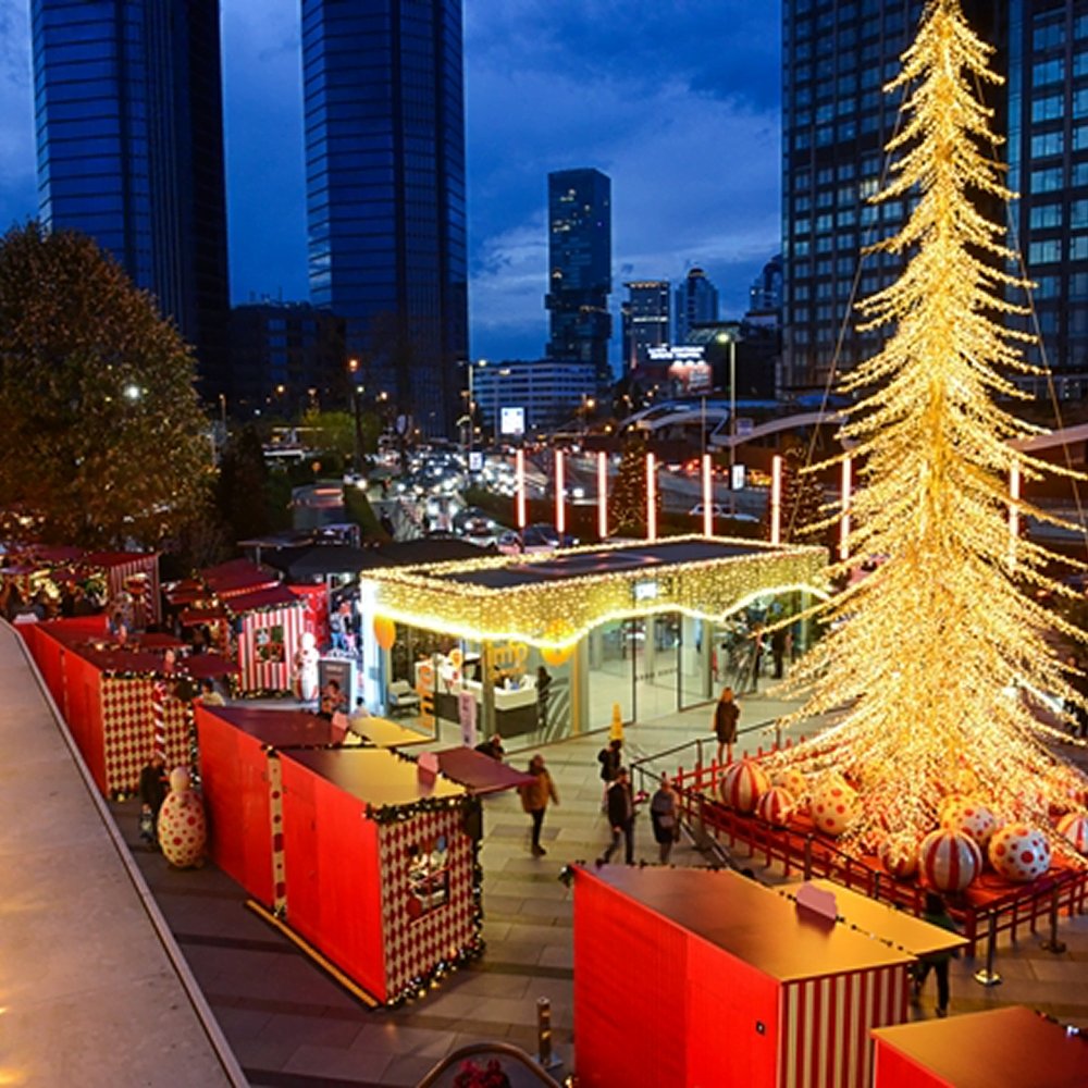 Zorlu Center bu yıl da yılbaşı ruhunu modern ve estetik bir yorumla karşılıyor. Meydan katında kurulan Christmas Village; kristal ışık detayları, renkli kulübeleri ve Avrupa şehirlerinin alışveriş sokaklarını çağrıştıran atmosferiyle öne çıkıyor. Pop-up mağazalarda dünya markalarının yanı sıra lokal tasarımcıların ürünleri, sınırlı üretim hediyelikler ve kokulu mumlar yer alıyor. Sıcak içecekler, brasserie lezzetleri ve tatlılarla zenginleşen gastronomik rota da ziyaretçilere eşlik ediyor.
