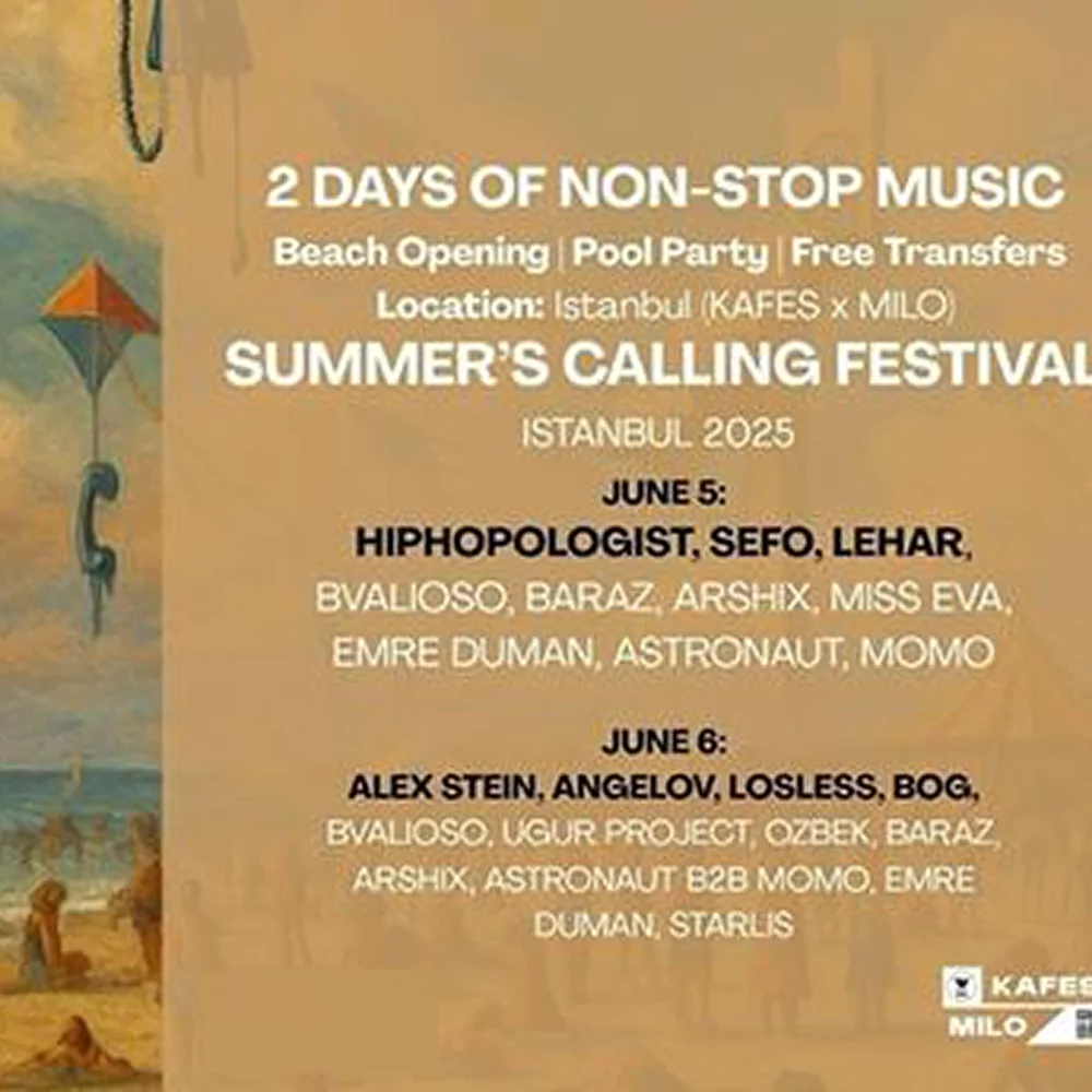 Yaz sezonunun ilk büyük elektronik müzik buluşması olan Summer’s Calling Festival, 5 Haziran Perşembe günü saat 12.00’den itibaren Kafes x Milo’da başlıyor. Deniz, müzik ve dansın kesiştiği bu festival, elektronik müziğin sevilen isimlerini bir araya getiriyor. Gün boyu süren performanslarla yaz ritmini yakalamak isteyenler için âdeta bir sezon açılışı.